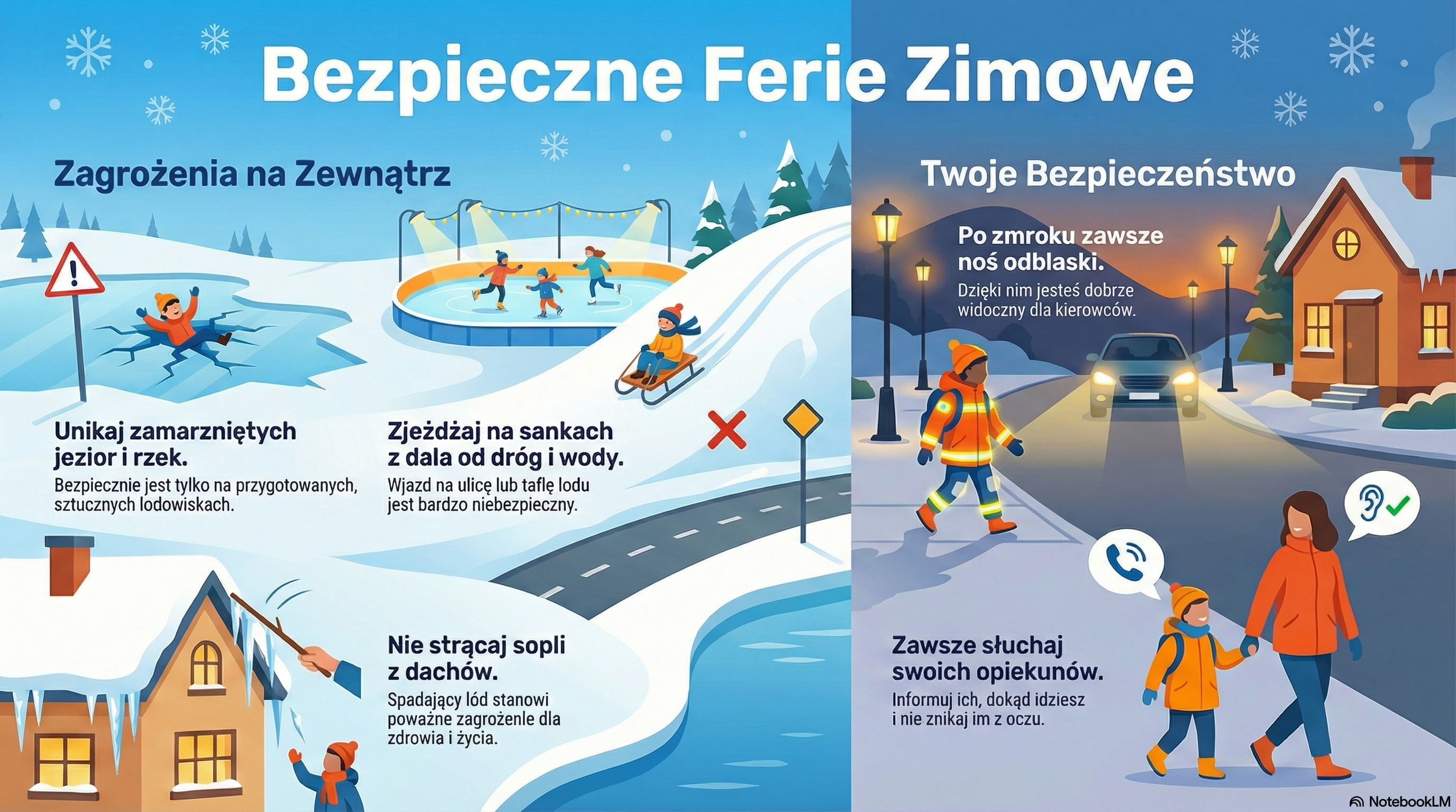 przed nami ferie zimowe – czas odpoczynku, zabawy oraz regeneracji sił. Aby ten okres był radosny, a przede wszystkim bezpieczny, zachęcamy do zapoznania się z zasadami bezpieczeństwa przygotowanymi na czas ferii zimowych.