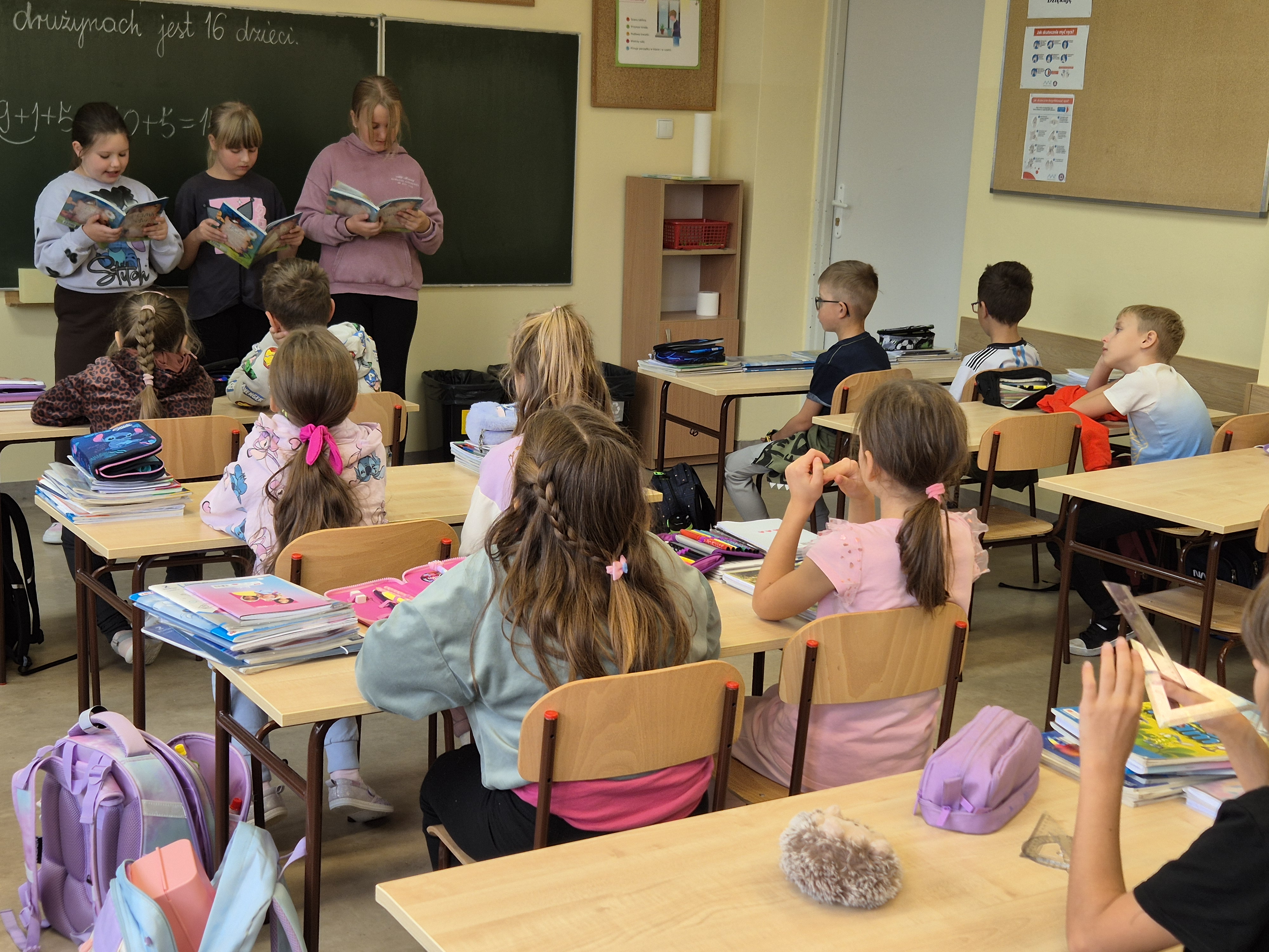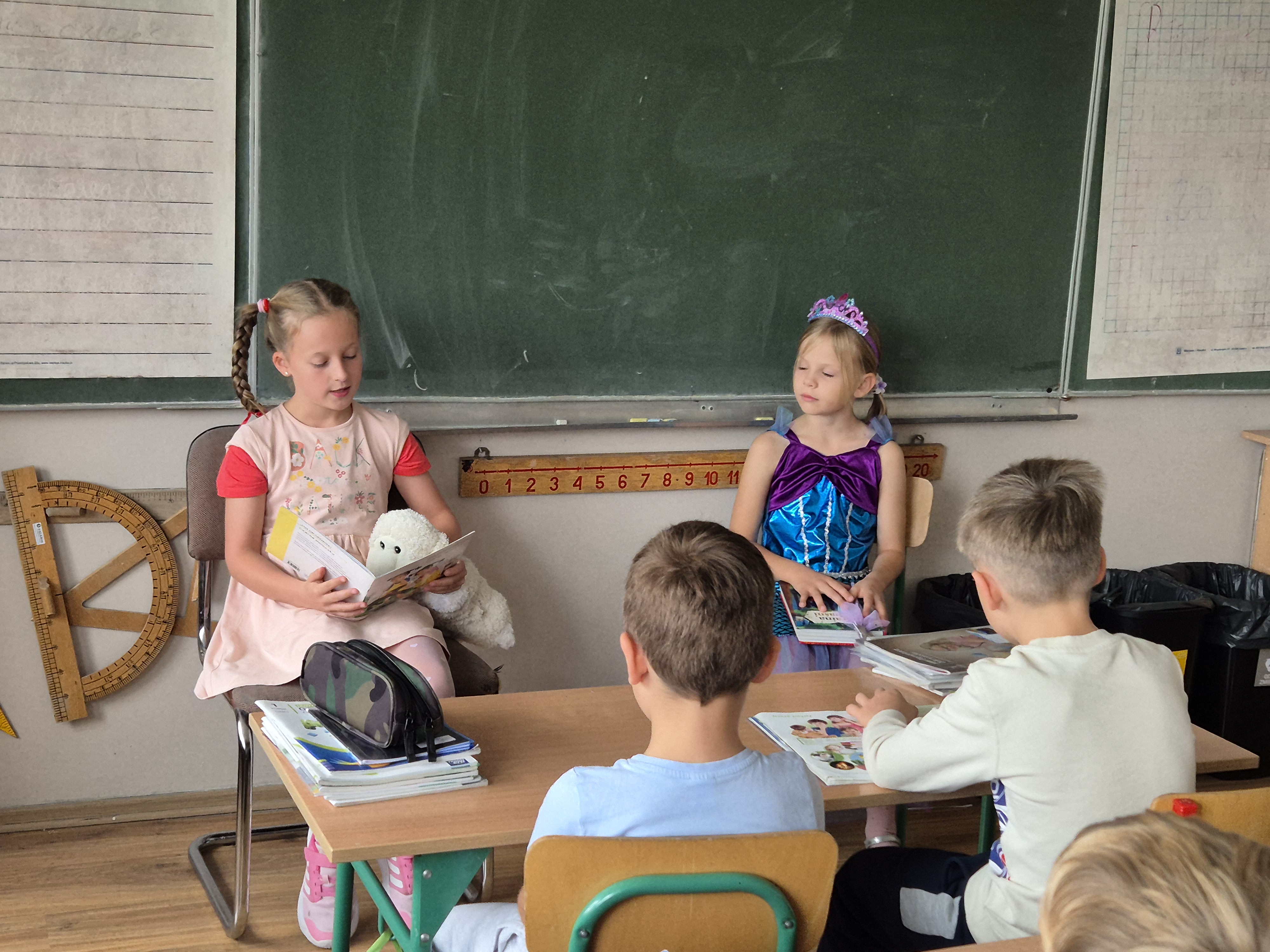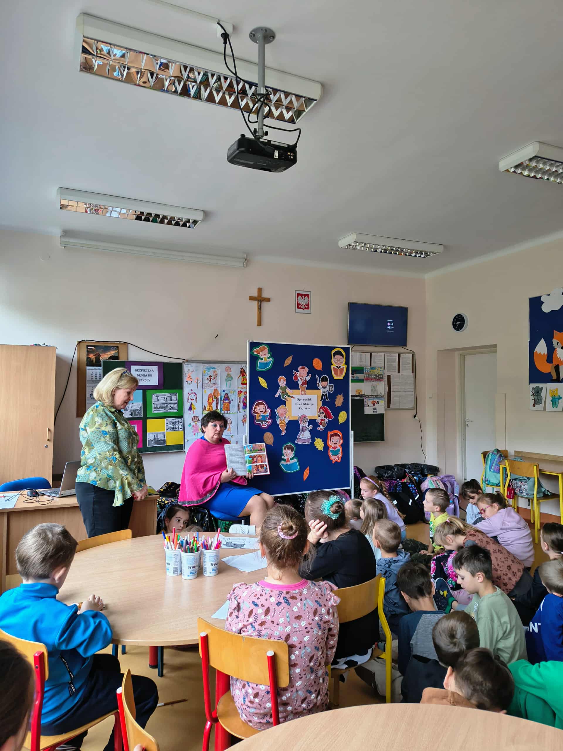 Dzień ten stał się doskonałą okazją do promocji czytelnictwa wśród najmłodszych uczniów naszej szkoły. Uczennice z 3 klas przygotowały akcję czytania młodszym uczniom. Sześciolatki i pierwszaki bardzo ucieszyły się z wizyty starszych koleżanek i kolegów i z wielkim zainteresowaniem śledziły losy bohaterów bajek. Uczniowie wszystkich klas, przez cały dzień, na początku każdej lekcji, słuchali przez 10 minut czytanej na głos wybranej książki.