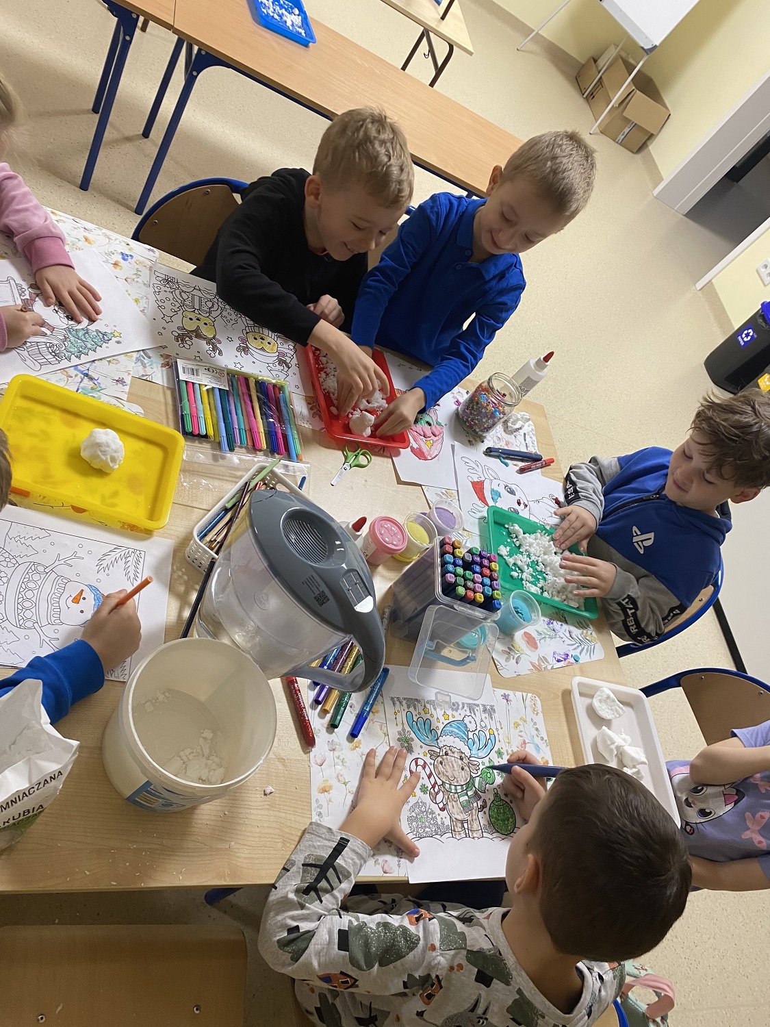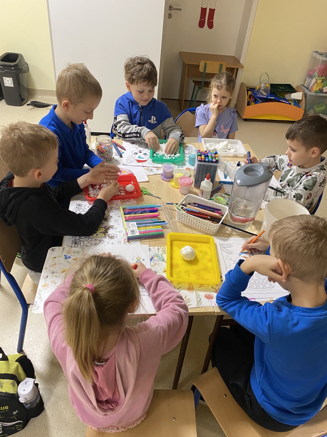 Zajęcia z integracji sensorycznej z elementami logorytmiki prowadzone w ramach projektu Zintegrowany Program Rozwijania Talentów i Kompetencji Kluczowych w Przedszkolach mają na celu wspieranie harmonijnego rozwoju dziecka poprzez łączenie ruchu, dźwięku i ćwiczeń stymulujących zmysły. Podczas spotkań dzieci wykonują różnorodne aktywności ruchowe, prace plastyczne, zabawy rytmiczne, ćwiczenia słuchowe i oddechowe, które pomagają im lepiej odbierać bodźce, koncentrować się i rozwijać koordynację. Elementy logorytmiki wspierają rozwój mowy – poprzez rytm, muzykę, rymowanki i pracę z głosem. Zajęcia sprzyjają także budowaniu pewności siebie, poprawie motoryki oraz lepszemu funkcjonowaniu w grupie.