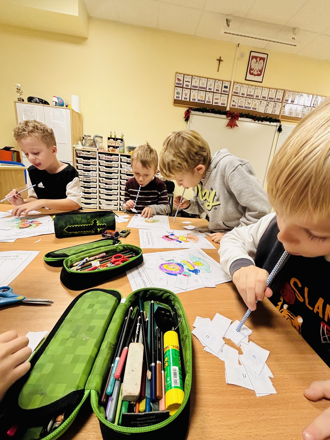 Podczas zajęć projektowych z komunikacji przenieśliśmy się w zimowy, bajkowy świat. Dzieci z dużym zaangażowaniem brały udział w ćwiczeniach, które łączyły naukę z zabawą i zimową tematyką.