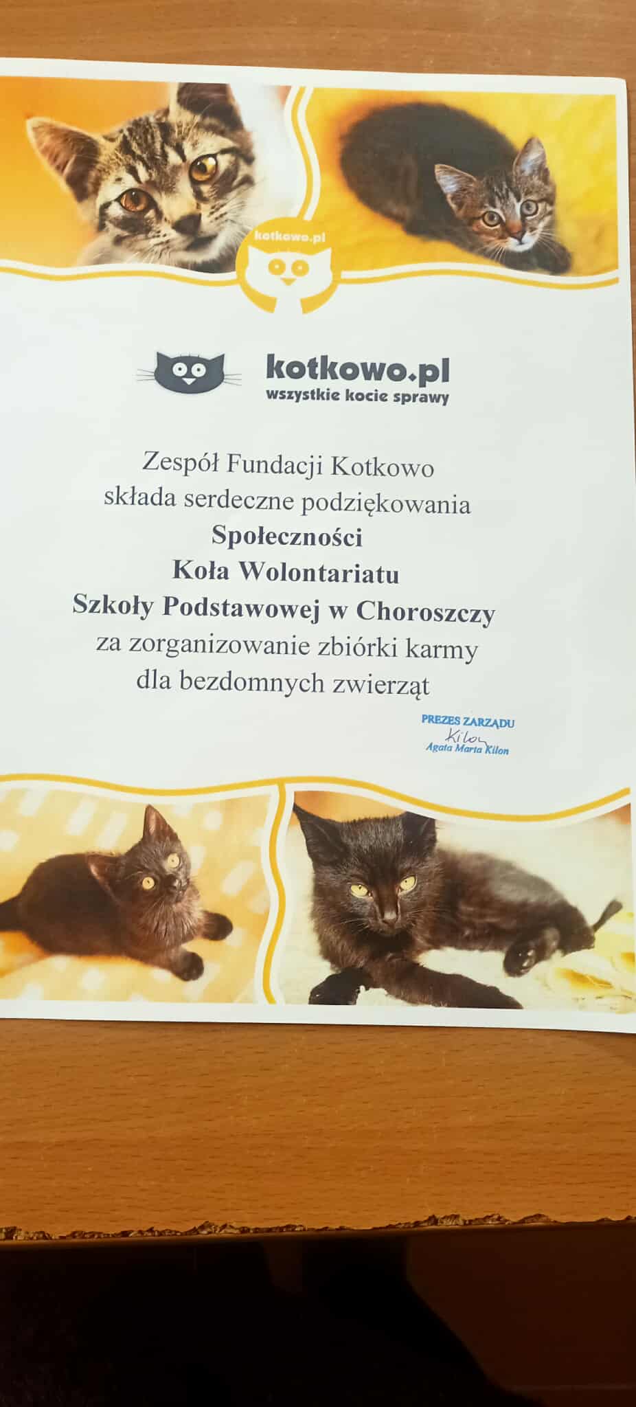 - serdecznie dziękuje uczniom, rodzicom oraz nauczycielom Szkoły Podstawowej im. Henryka Sienkiewicza w Choroszczy za ogromne zaangażowanie, empatię i otwarte serca okazane podczas zbiórki na rzecz potrzebujących zwierząt.